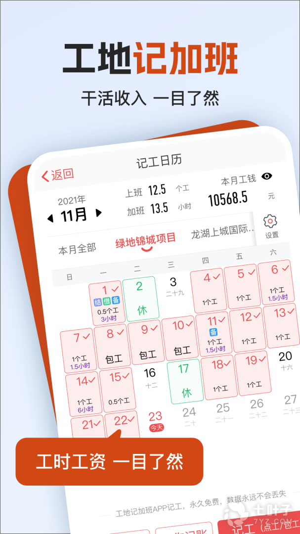 2、该软件专为工地做工的农民工打造,让他们可以更好的记录自己的每天工作时间和加班情况,更好的算清楚自己得到多少钱,有需要的可以到下载体验