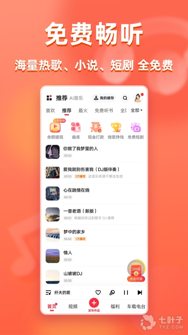 这里听音乐同时,你还会有机会获得现金红包,帮助你快速的赚取到不同的零花钱!