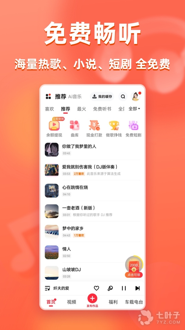 6、它不仅为你提供了大量的流行资源,还通过听歌赚钱