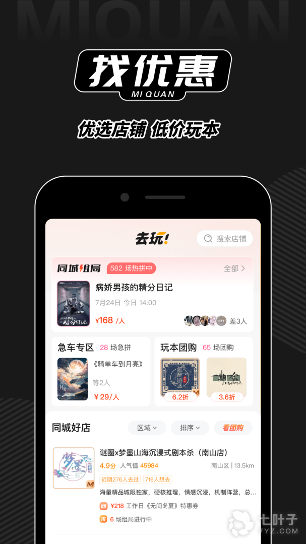3、同城店铺随便选,你可以查看店铺环境,了解商家优惠,约起小伙伴线下畅玩