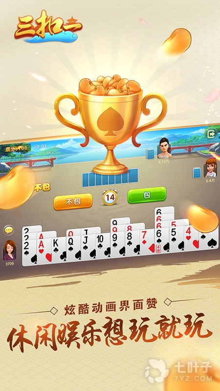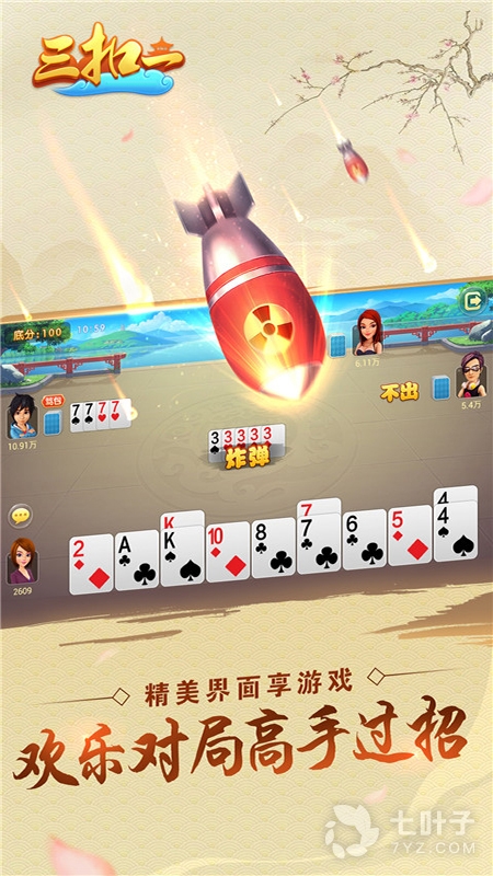 2、哥哥三扣一无需注册,一键登录!海量玩家,多种赛事!游戏画面精美,节奏快,玩法简单,娱乐性强