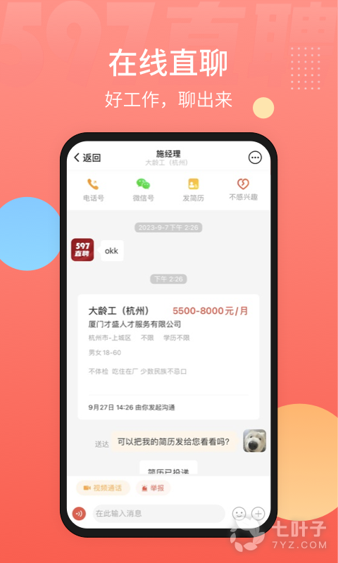 3、通过597直聘直接与老板进行沟通,微聊或及时的电话联系