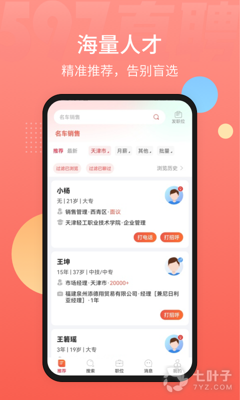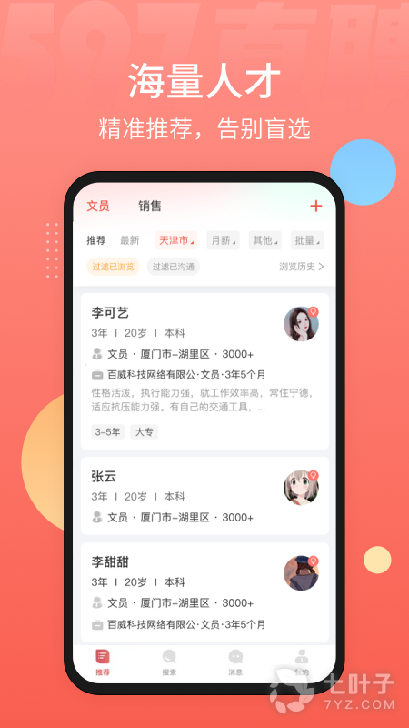597直聘(原:597人才网)专注于在线求职招聘找工作,匹配招聘者和求职者,快速查看。随时随地,马上开聊。聊完就约,拍板快,入职快!全面海量的信息、职位让597成为100万+企业和2600万+求职者的共同选择。