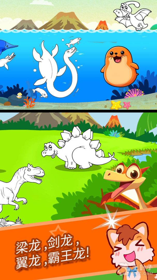 3、宝宝恐龙涂色本app提供孩子学习恐龙认知,教孩子画画涂色画恐龙,宝宝恐龙涂色本app是儿童成长的好帮手