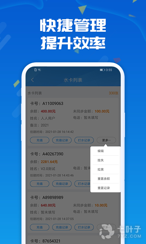 2、客户能够在这儿对水卡信息内容开展改动也有销户等作用