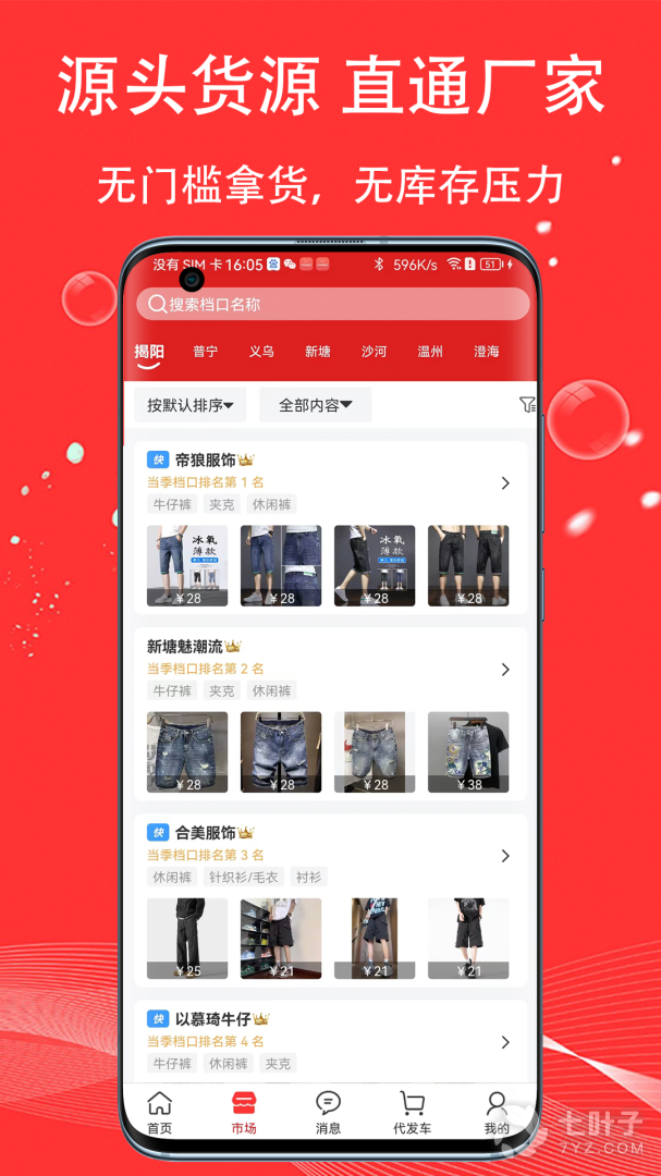 一件代发:平台所有货源皆支持一件起批、代发,实现真正无门框拿货,无库存压力模式。