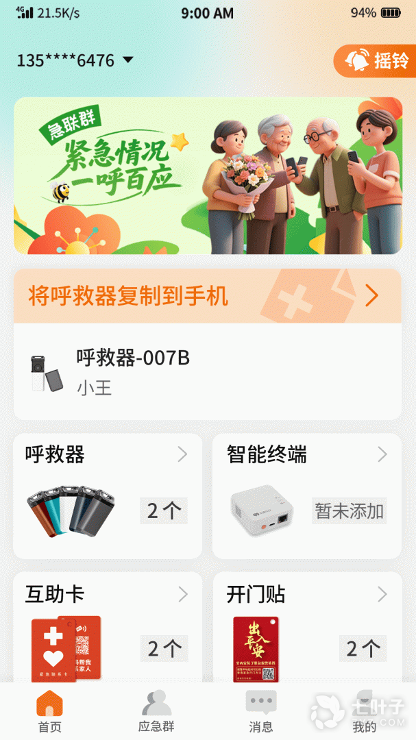 安全守护:配合救救帮智能设备,一键报警通知紧急联系人,随时守护家人健康与安全。