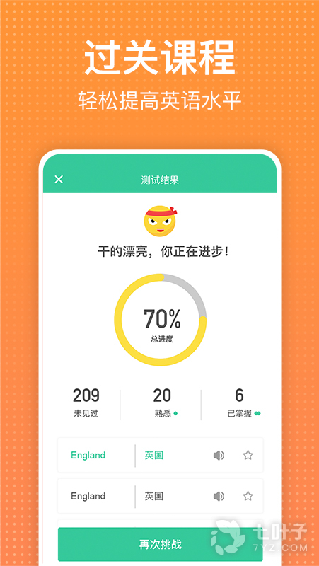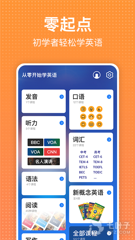 1、从零开始学英语”采用卡片式的内容设计,每一段学习内容都带有系统自测功能,让学习者能够过关斩将地完成每一个学习模块的内容,轻松取得进步