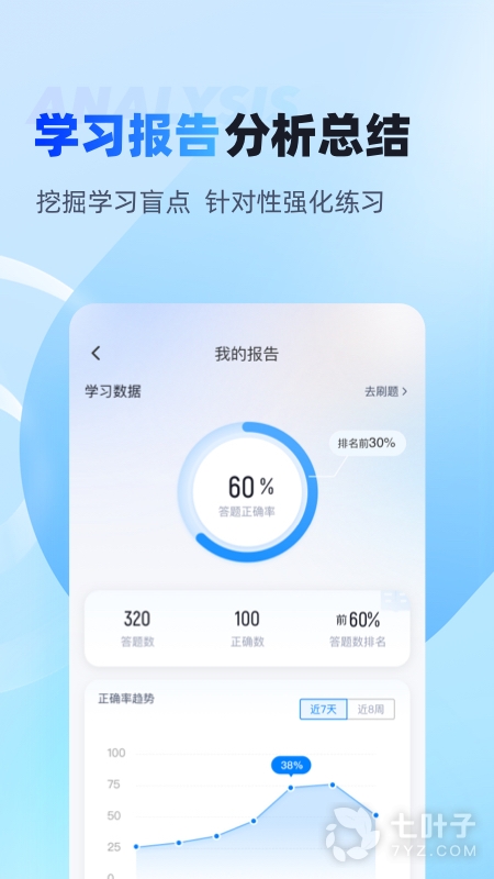 2、每次进行答题训练时,都能在app内查看答题成绩,掌握学习情况