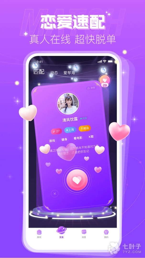 2、在线聊天交友app附近交友、同城约会、语音互动、聊天交友、互诉心声、通过语音遇见更有他趣的他!聊天室新社交,陌生人速配交友,靠自己独特声音遇到TA,撩起TA对你的想象,处cp成对象