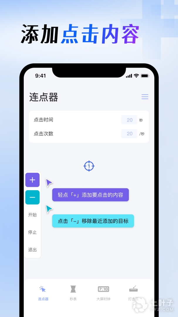 2、适合多场景使用,拥有的服务项目多,一键即可添加不同的任务,帮助你开启智能触屏点击,释放双手,除此以外还有其他功能,比如秒表计时、大屏时钟等服务,即可安装使用哦
