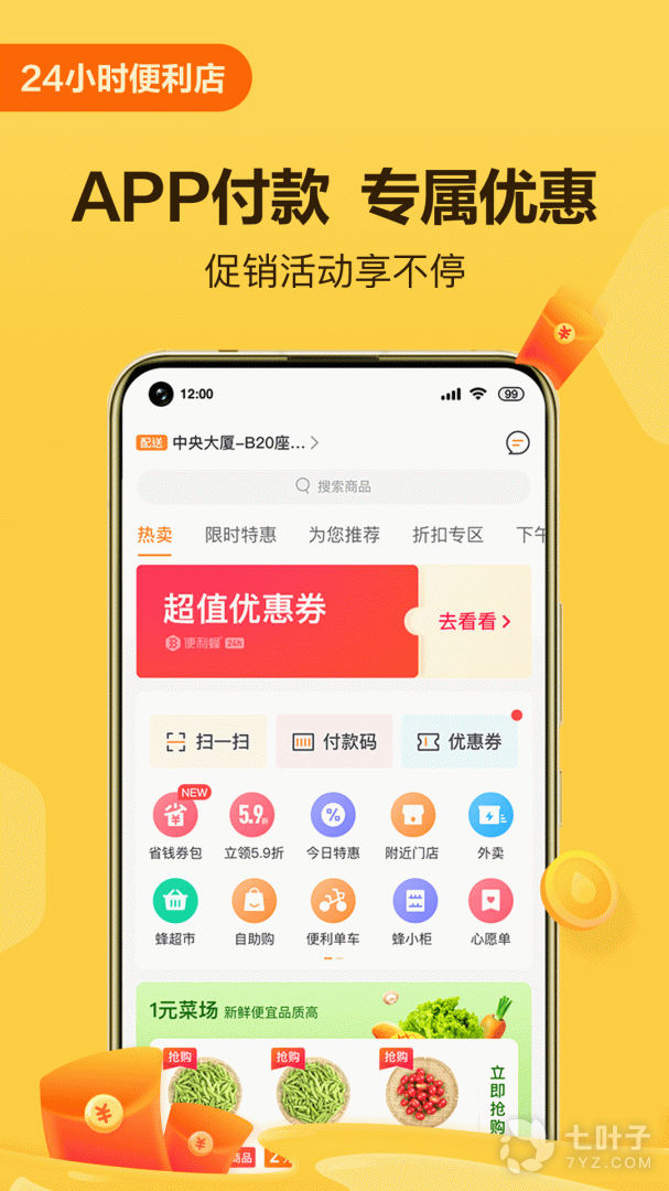 3、便利蜂便利店app是一款手机购物应用,线上下单,到店提货就走。提供早餐、便当、下午茶、水果、饮品、生活用品等一站式服务,感兴趣的朋友赶快来下载吧