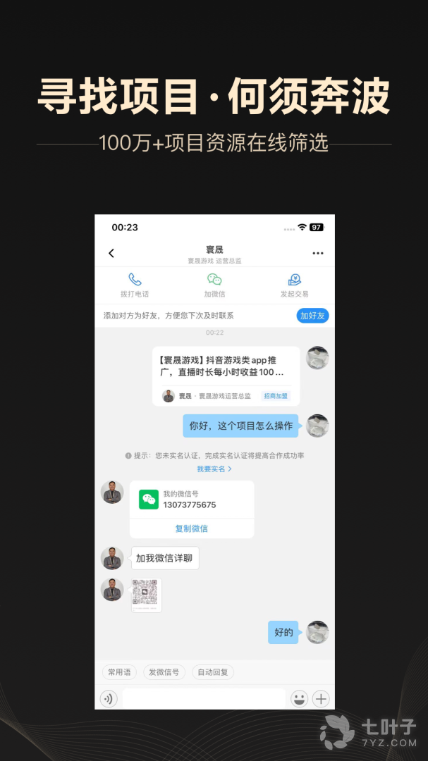 5、新用户7天免费福利,每天可与10人畅聊合作,免费加入商合作精英圈子7天