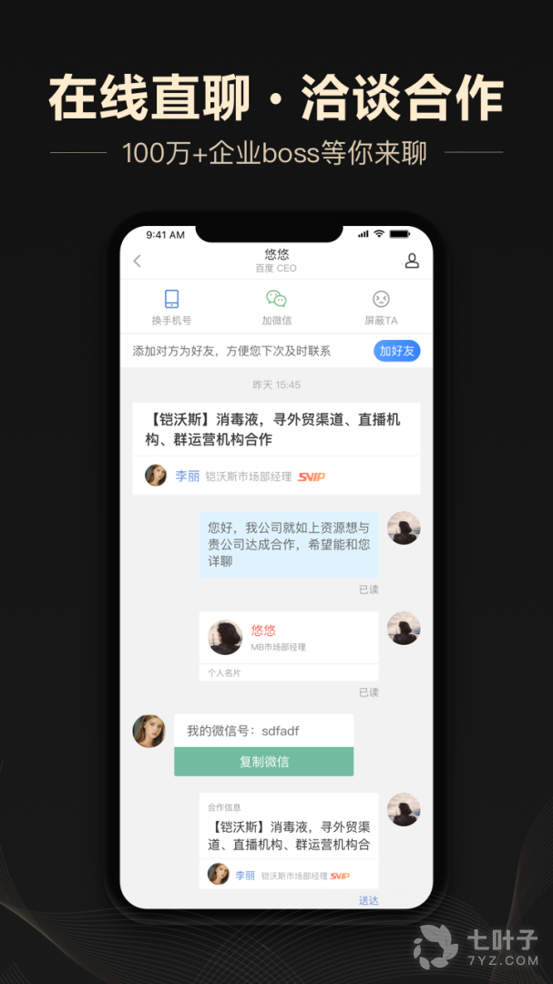 1、商务拓展搭建一个良好的沟通渠道,不仅拥有海量线上资源,同时大家可以一起交流行业问题;有需要的小伙伴快来下载体验