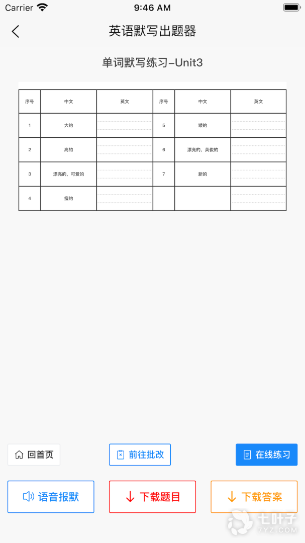 英语默写出题器提供英语单词的的下载、打印、语音默写和在线练习功能。