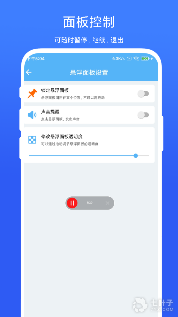 5、面板控制,随时暂停,继续,退出,体验最方便的控制体验