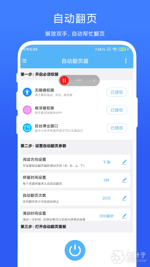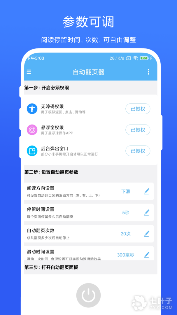 更方便的设置可以实现自动翻页,解放我们的双手,而且在这里翻页的速度等都是可以由你定义的,自己去确定参数就可以了,无需等待哦,而且这个工具适配很多的阅读软件,运行过程非常的稳定,完全不用担心闪退情况。