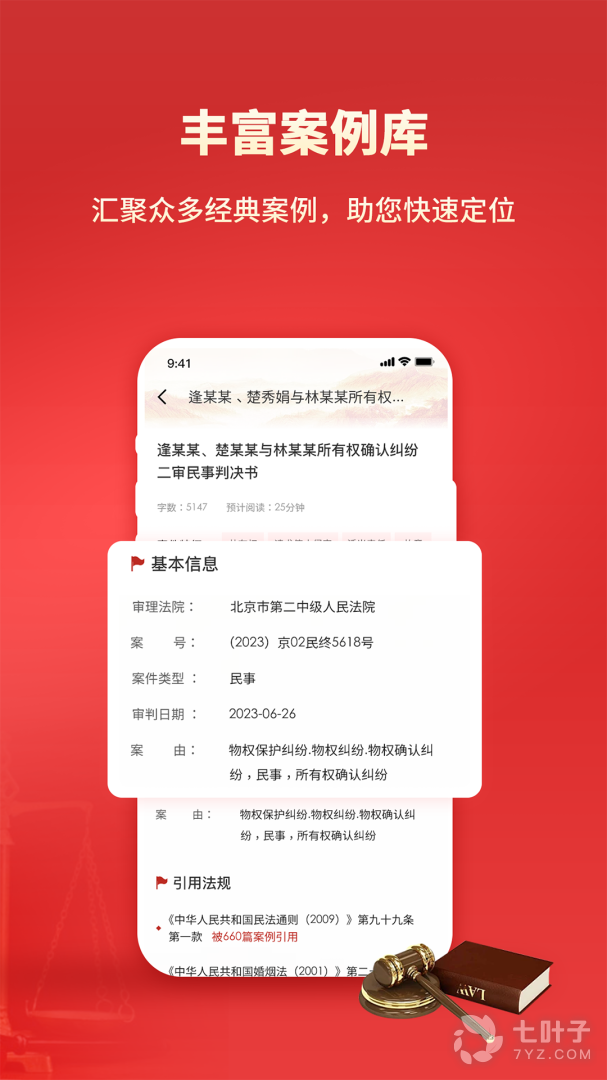 3、内置劳动纠纷、交通事故、消费维权、借贷纠纷、公司经营、合同纠纷、知识产权、医疗纠纷等所有相关常见法律原文和解释,用户可以查看所有相关历史案例作为参考,以便于更好理解法律条款的实际表现