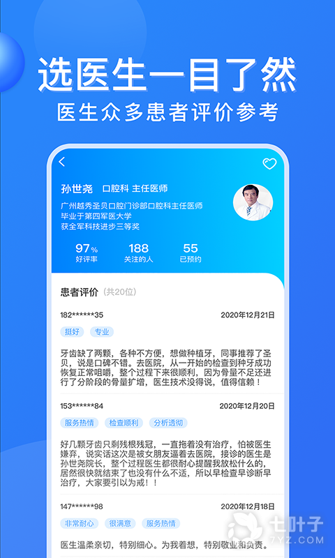 挂号之前能够自由的挑选医生,三甲医院的专家医生号源都能及时预约;