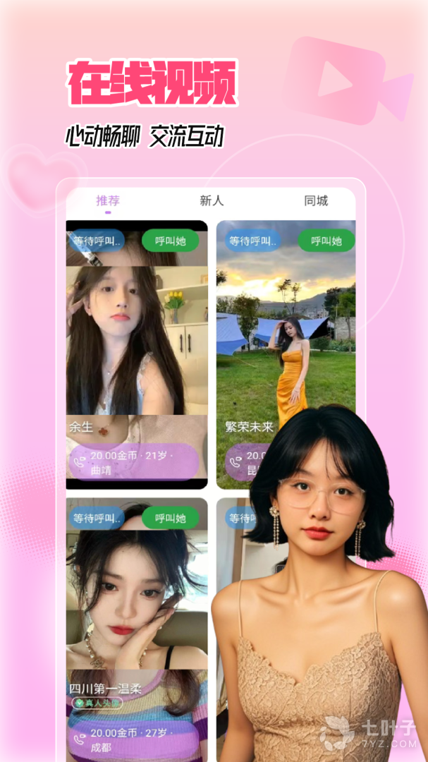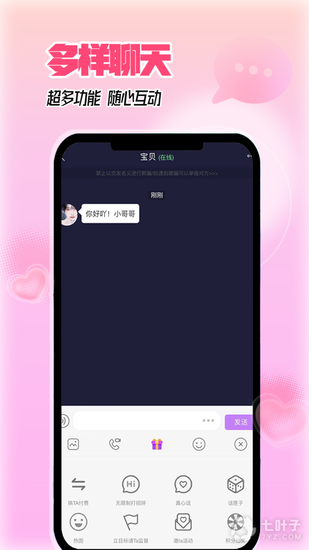 支持视频聊天,语音聊天,文字聊天,看写真集,看短视频,