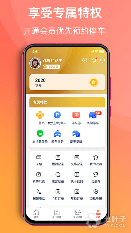 3、我们可以点击下面的出行服务,里面有导航、千里眼、停车等众多功能可以使用