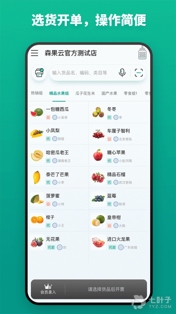 为果行老板提供便捷的管理工具,提供完善的店铺数据,可以统计果行每天订单信息,能更好的去得到最详细的数据,支持在线随时新增货品,可以同时连接多台打印机,开票即可立即打印。