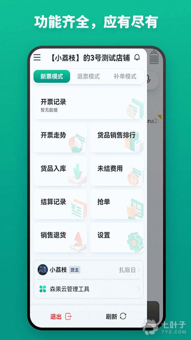 2、森果开票助手是为果行批发人员打造的手机开票助手软件,APP为果蔬批发市场经理提供发票管理、高效办公、果蔬批发系统管理等功能,高效快捷,操作简单
