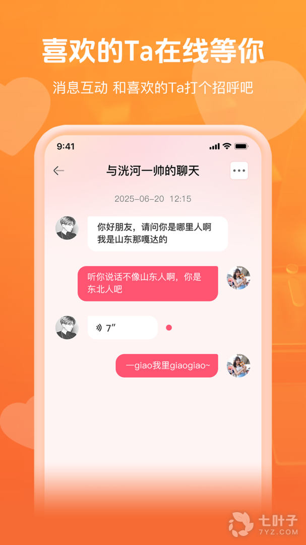 3、让广大还单身的小伙伴也能在这里遇到缘分。可以通过语音、文字、图片交互聊天。随时可以直接在线聊天交友,带给你非常好的约会体验。并且平台也会开展一些线下活动,你可以直接手机上面报名,线下交流会更加的真实