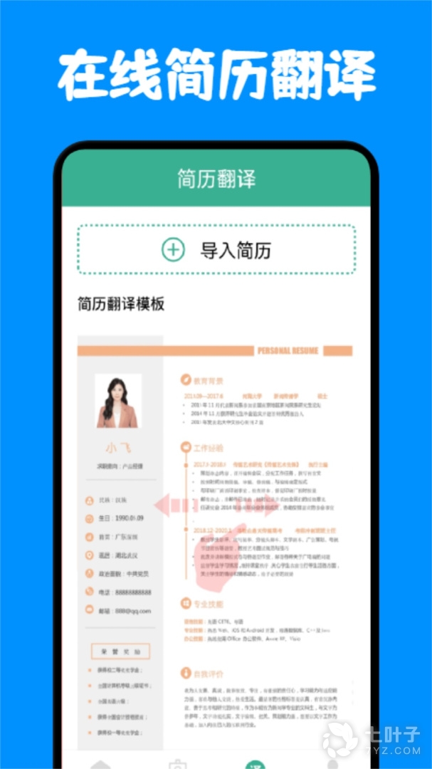 4、支持导入个人简历照片