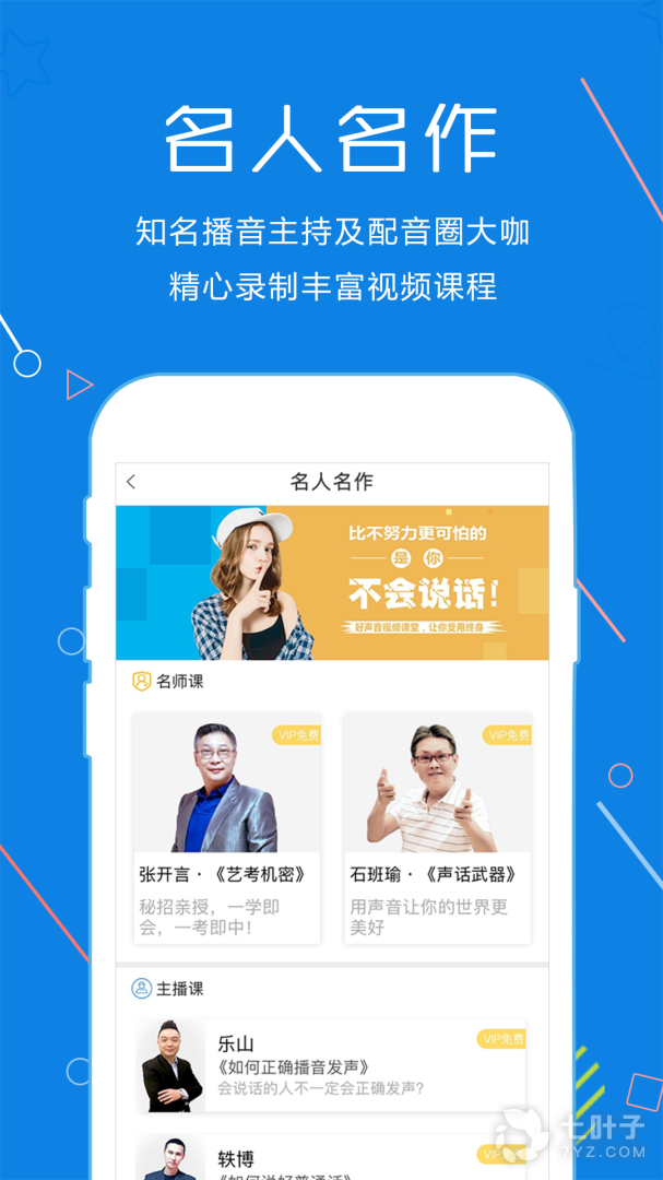 知名播音主持及配音圈大咖精心录制丰富视频课程,帮助你在声音学习的道路上少走弯路。