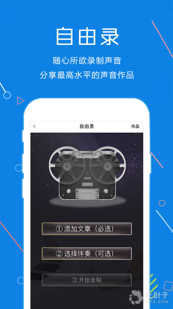 自由添加录制文章内容,自由添加背景音乐,充分体验随心所欲录制声音的感受,分享高水平的声音作品。
