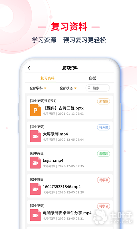 1、在本站下载安装并打开C30学生端,进入软件,用户可以查看自己的学习评价,复习资料等内容。
