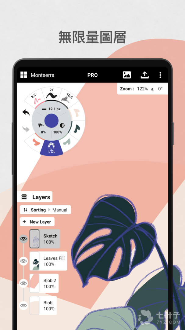 1、使用本开启绘图之旅,免费功能包括精美绝伦的Copic色轮、灵活强大的笔刷工具、5张图层、无限大画布和JPG导出功能