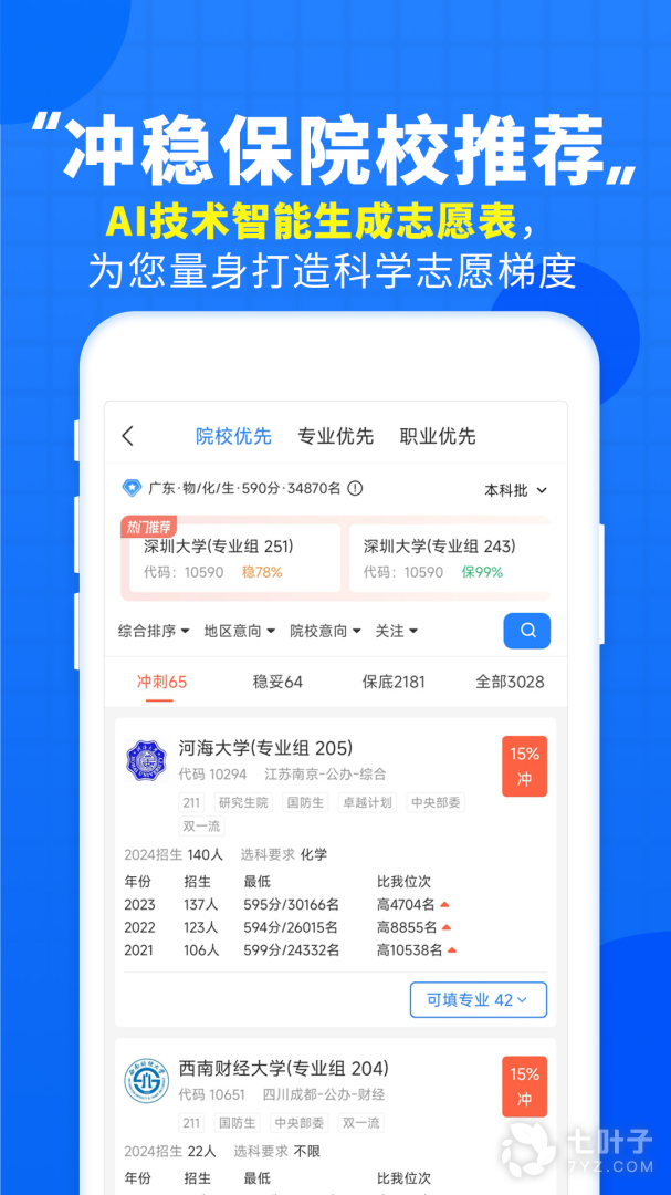 ● 智能推荐优化志愿组合,支持一键填报,智能填充