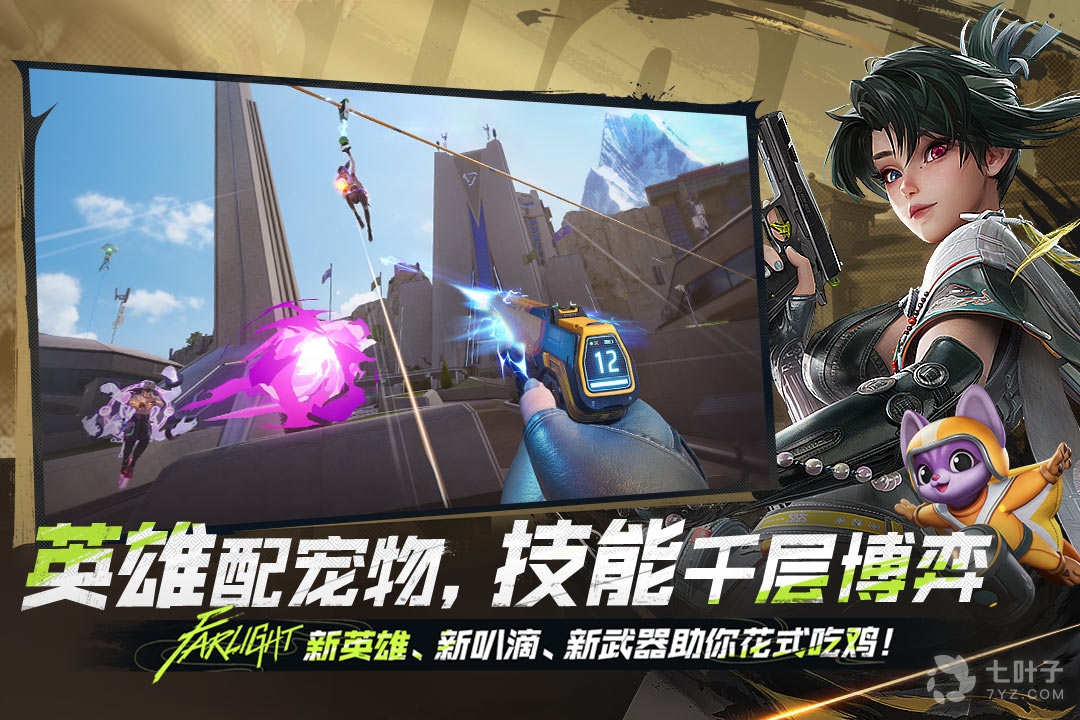 2、玩家可以选择不同的英雄角色进入2084年的未来世界,并与其他幸存者一起体验60人吃鸡的游戏。通过在游戏中搜索或战斗,可以提高攻击力和护盾值,探索型和战斗型玩家都可以提高自己的战斗能力