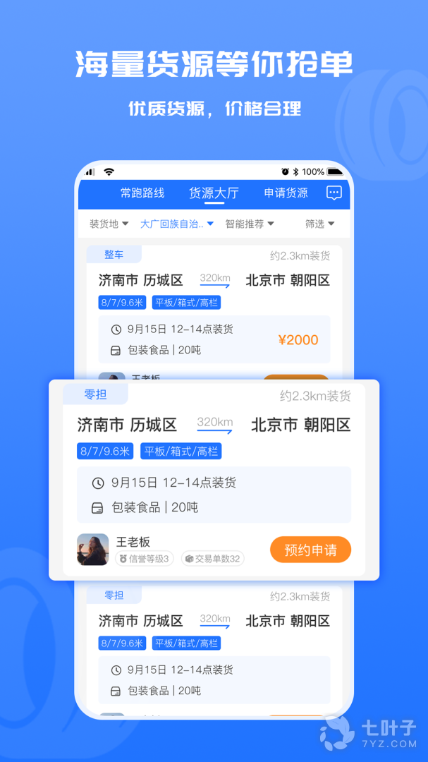 点击【货源】――查看货源列表――点击感兴趣的货源查看详情――联系货主询问详情-―【预约接单】—―缴纳保证金或不需要缴纳―一在订单详情中签署运输协议――根据货物实际情况填写运输信息――【确认协议】