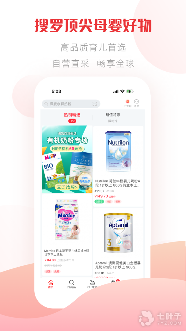 1、海量商品,我们的软件之中对于婴儿养护的产品等进行一个全面的网罗,让用户能够通过我们的软件找到合适自己的产品