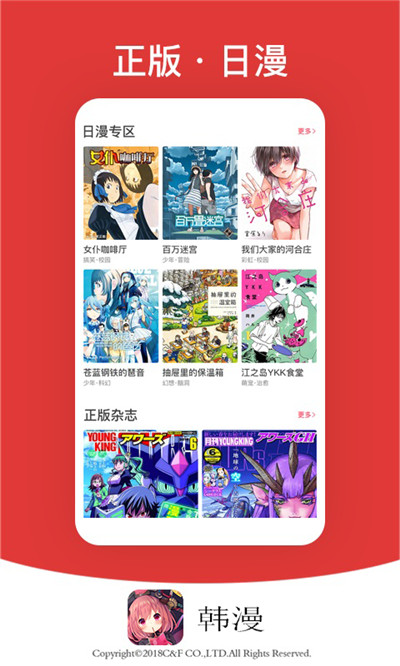 日漫国漫分门别类,后台智能算法构建的智能搜索引擎,从海量关键词汇搜索引导上亿的漫画作品更新到推荐及热门排行榜