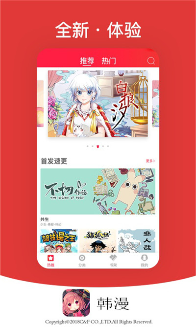 2、实时连载更新,同时App还有精品国漫、经典日漫等。用户通过App可以一站式流畅阅读,线上收藏,准确搜索和离线阅读。韩漫app资源多、分类详尽、更新及时,让喜欢漫画的小伙伴,想看就看