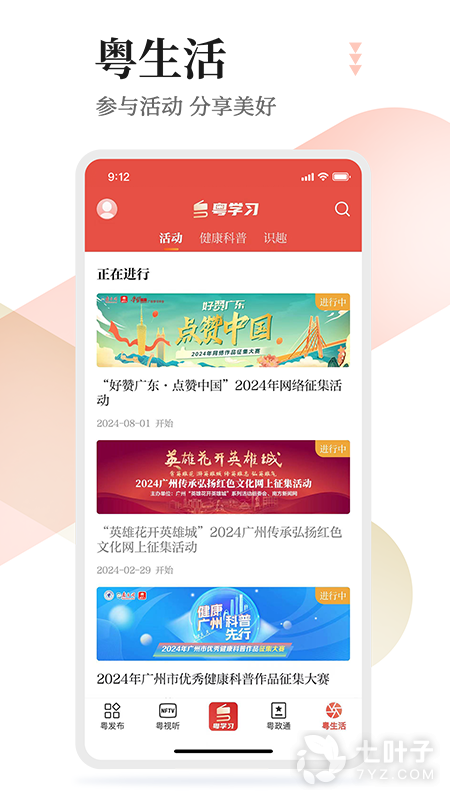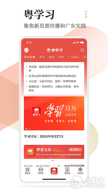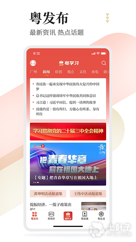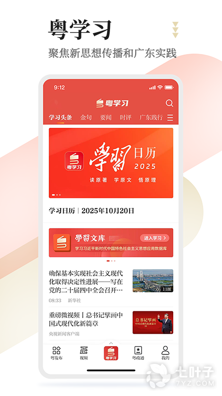 1、粤学习APP是一个综合性质的全民网络学习平台,粤学习APP具备视频、直播、新闻、内容创作等板块,超多精彩内容,快来一起学习吧