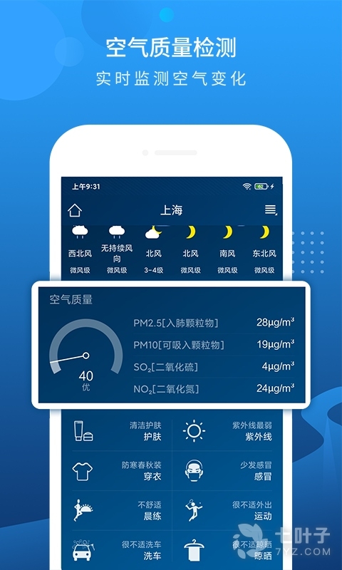 【实时天气】:实时获取您当前位置的天气预报和空气质量污染指数;