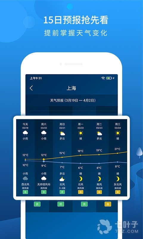 5、可查询未来一周天气预报和生活指数,让您轻易的掌控近期温度变化,便于及时增减衣物,轻轻松松享受生活