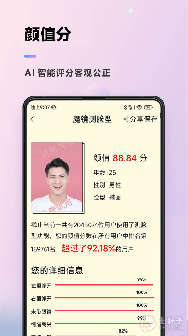 5、智能的颜值测试,让帮你更加深入的了解自己的颜值