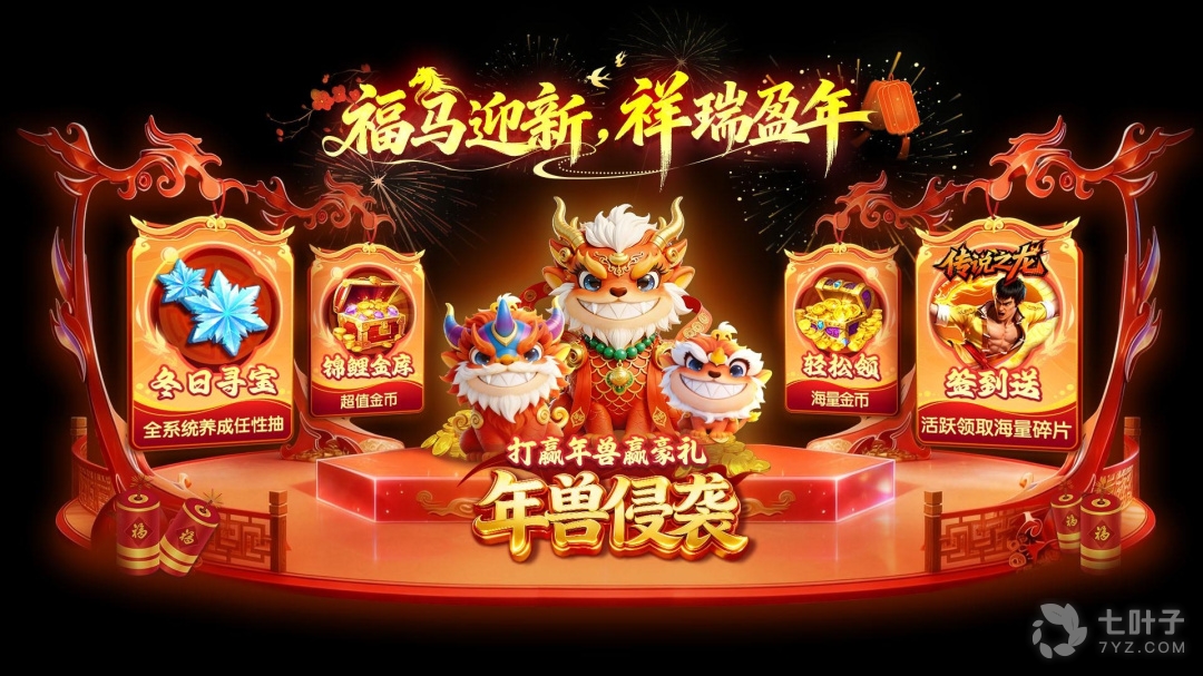 5、限时活动:福马迎新,马年福气到!签到可领圣兽、战神碎片,完成任务可获大量养成碎片!更有锦鲤金库海量金币多买多送!