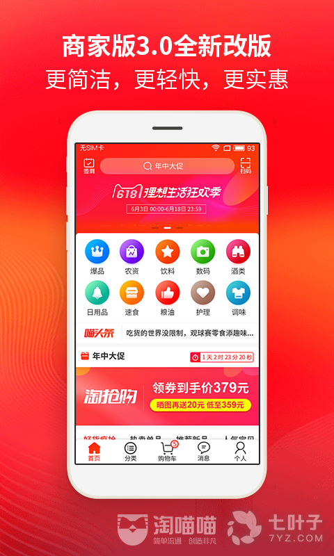 2、淘喵喵商家版app下载,这是一个非常棒的手机购物软件哦!用户可以在线进行购物批发你要的产品 !商家更加有效的在线管理产品呢