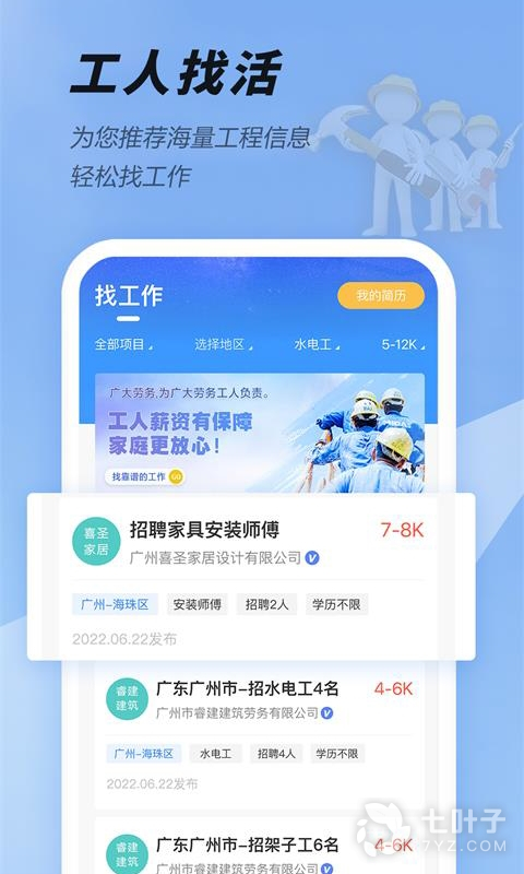 每天海量招工信息在线发布,海量工友在线找活,满足老板工人的在线招工找活需求,让建筑办工更高效、更智能、更便捷!