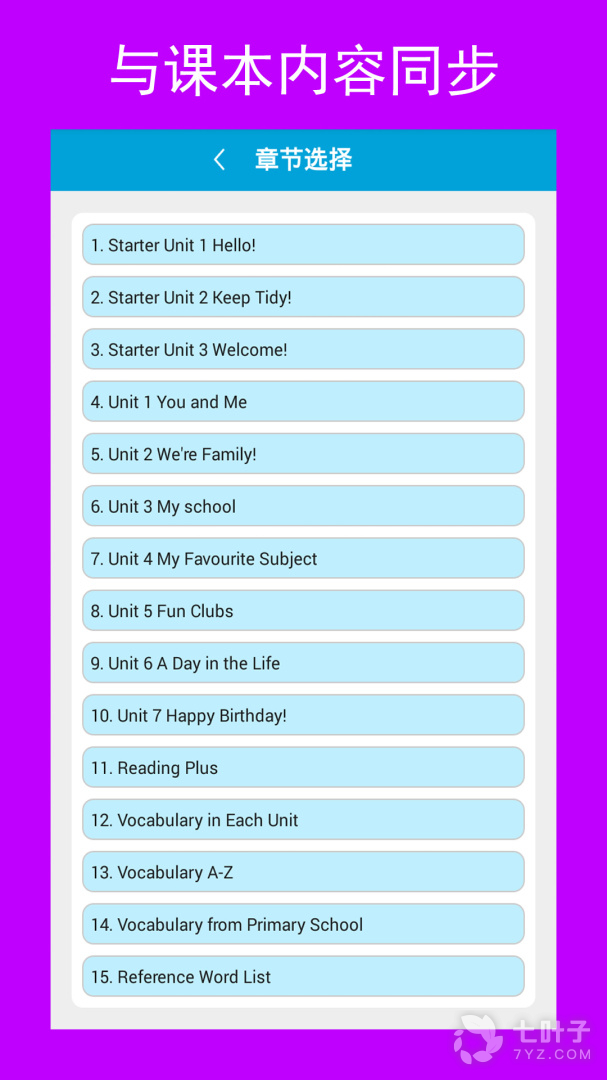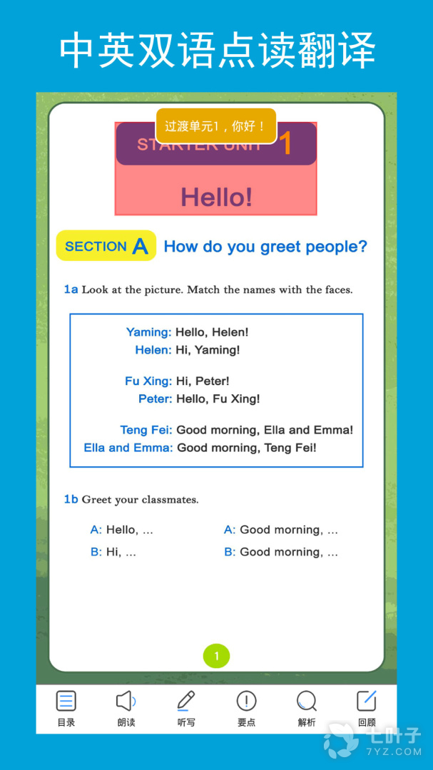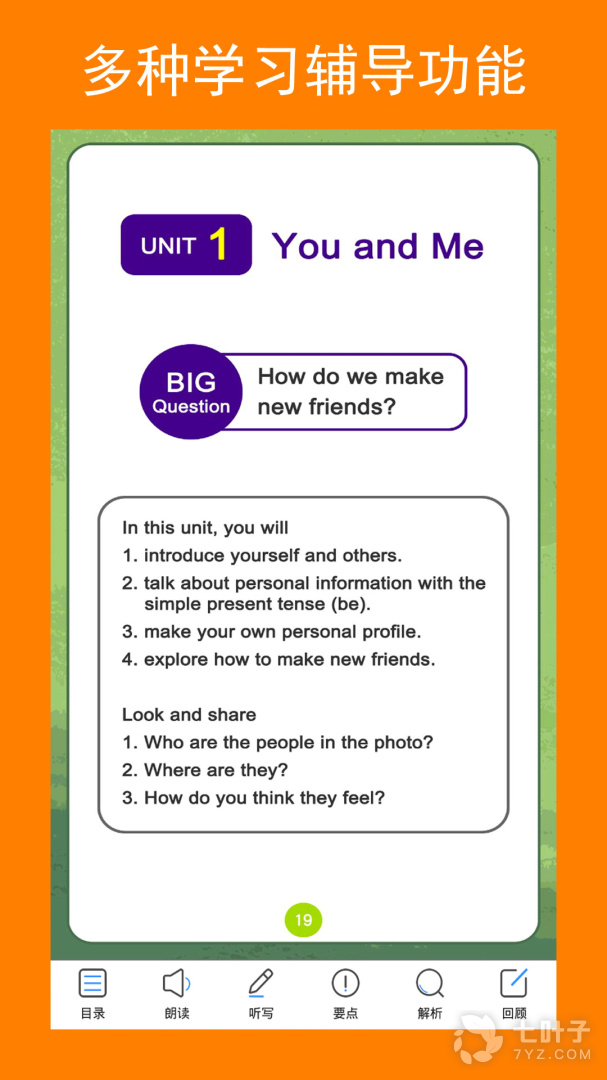 2、新目标英语七上的同步这个软件的知识点也全面的解析,主要的功能有单词巩固、口语增强、同步点读等,操作简单里面会有使用帮助