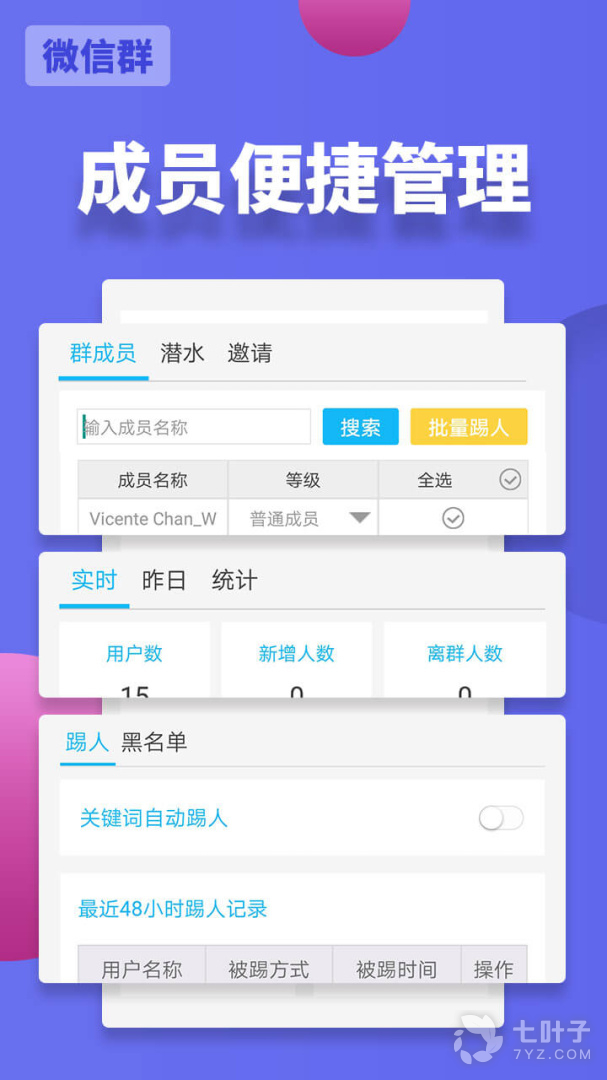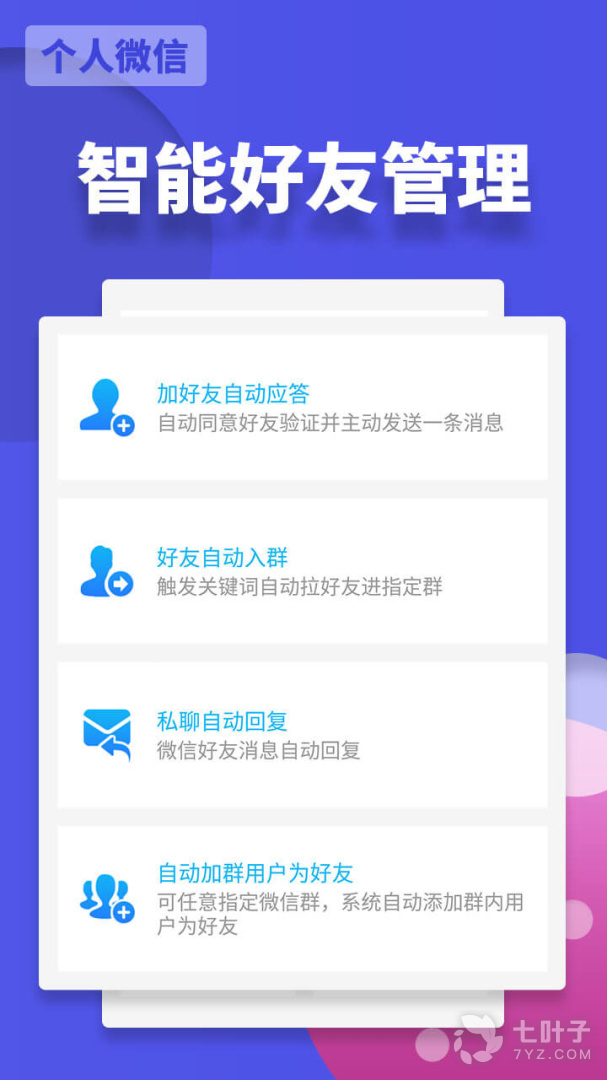 1、微友助手APP是国内专业的微信群管理机器人,帮助管理员完成用户统计,自动回复,批量管理群成员等多种功能,还能代替群主及时欢迎新成员,与群员互动聊天等