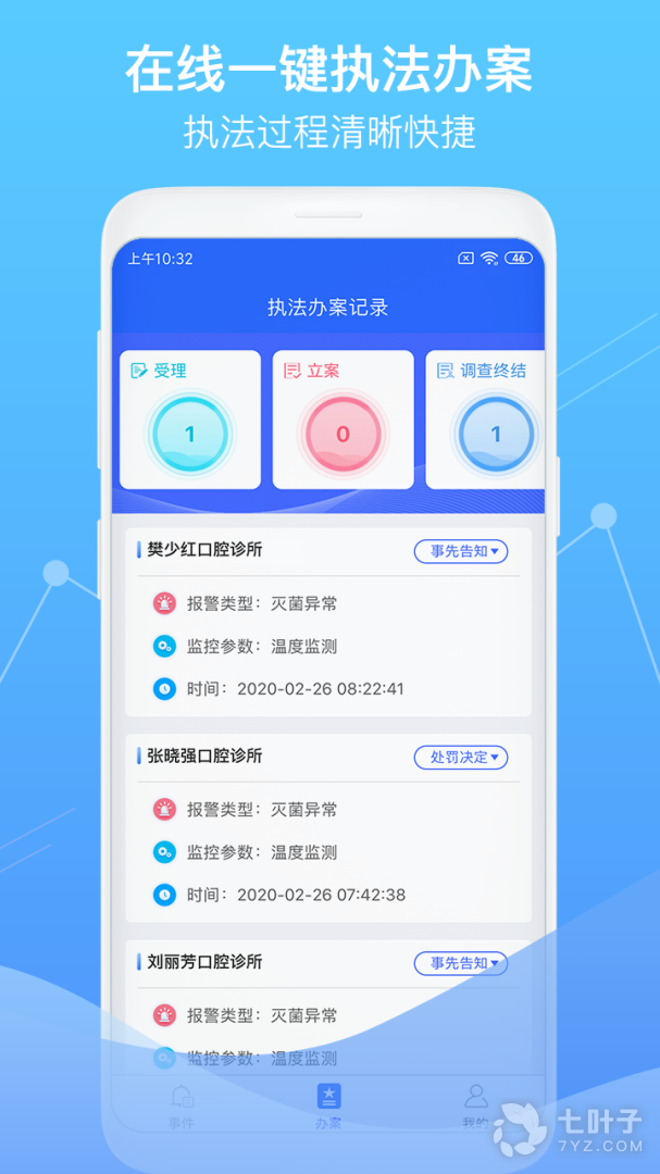 2、智慧卫生监督,专为卫监机构打造的智慧执法工具。通过平台,在线一键执法办案,随时掌握场所内卫生异常情况,实时监控卫生场所异常操作,帮助卫生执法有利顺畅进行