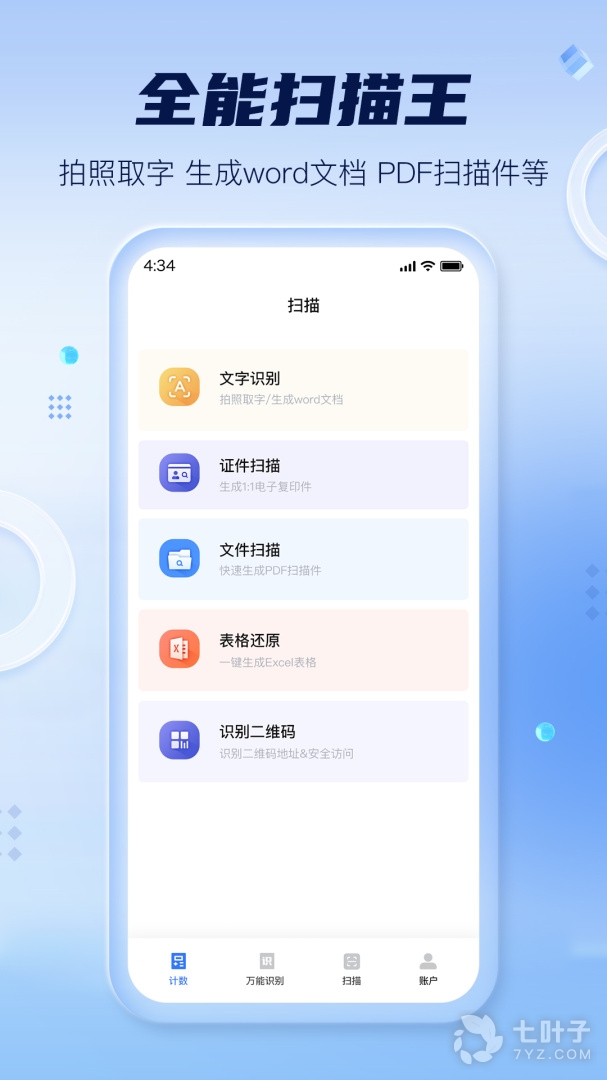 扫描计数全能王是一款专业的扫描计数应用,可以识别图片中的文字,一键整理成电子文档,方便快捷。